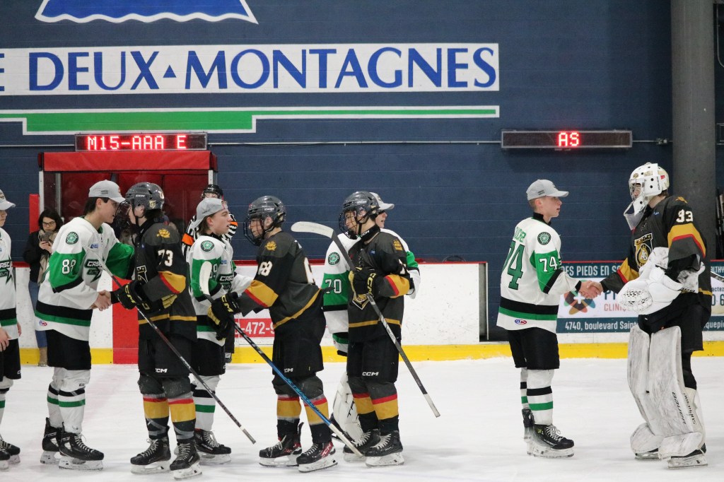 Lors de ce duel qui s’est déroulé le dimanche 20 avril 2025 à 16h00 à l’Olympia de Deux-Montagnes, les As de Québec ont pris les devants 1-0 en deuxième période. Les Cascades Élite, qui n’ont pas abandonné, sont allés chercher trois buts contre leurs adversaires en troisième période, portant la marque à 3-1 en leur faveur.